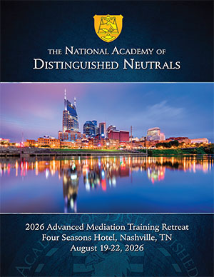 Held every 2 years, the NADN Advanced Training Retreat has become the most anticipated professional and social event on the calendar for experienced mediators across America. Over 3 days, the Retreat brings together renowned thought-leaders and some of the finest ADR trainers in the world to share their knowledge and experience with Academy Members. Spouses & family guests are very welcome to attend social events.